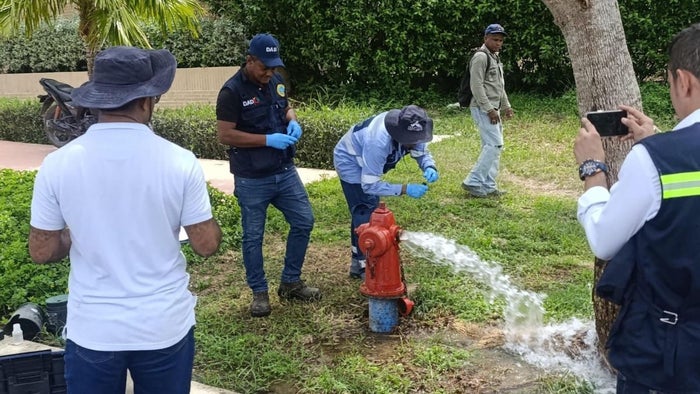 "Esto nos fue notificado el día lunes y desde el día lunes venimos trabajando con ellos en este tema, se han hecho lavado, vuelve y aparece la contaminación. O sea, realmente no hemos podido identificar qué es lo que pasa y no, no sucede más allá de estas copropiedades. Entonces, estamos todavía en eso. Tenemos gente allí durante todos estos días hemos tenido y de forma más intensa en el día de ayer y en el día de hoy buscando la razón de esta situación que se viene presentando", indicó Montoya.
