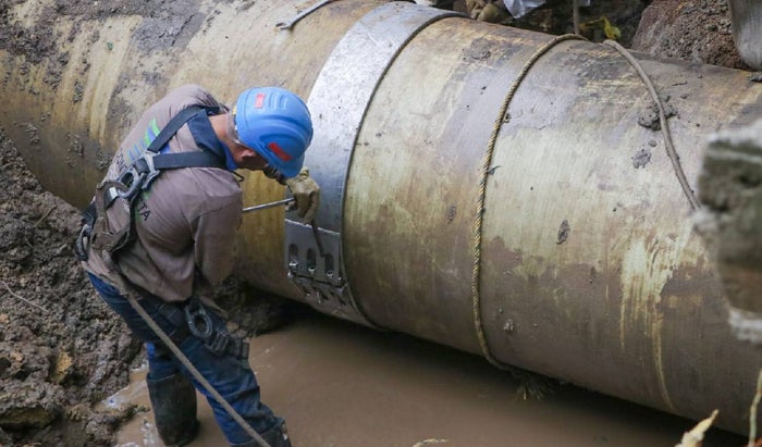 Fueron 10, las horas proyectadas para terminar con los trabajos de intervención que no requirieron labores de soldadura sino únicamente el corte del niple dañado y el acople de dos nuevas uniones tipo Arpol que se adosaron para ajustar y estabilizar la red agrietada.