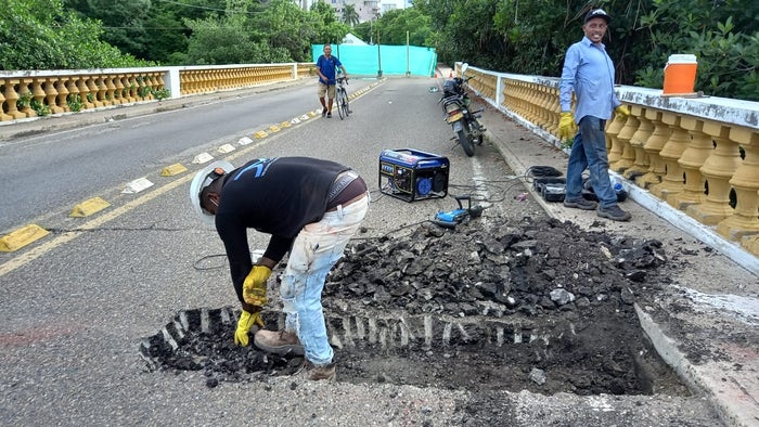 Villadiego expresó que “los trabajos consisten en la colocación de vigas metálicas sobre el puente actual, las cuales se apoyarán unos metros más allá de los extremos existentes; una vez colocadas, sobre ellas reposará una lámina de acero que se integra a las mismas para formar una estructura que garantizará la estabilidad y seguridad al transitar, mientras se hacen los estudios y diseños para el nuevo puente”.