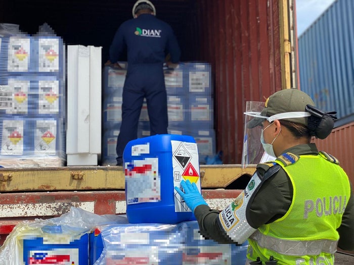 Tras la inspección a varios contenedores, efectivos de la Policía Fiscal y Aduanera y la DIAN, hallaron este químico, los cuales al verificar físicamente se evidencia que esta mercancía presenta inconsistencias de tipo documental. Por lo que se procede a realizar la aprehensión la sustancia y dejada a disposición de la Dirección de Impuestos y Aduanas Nacionales (DIAN).