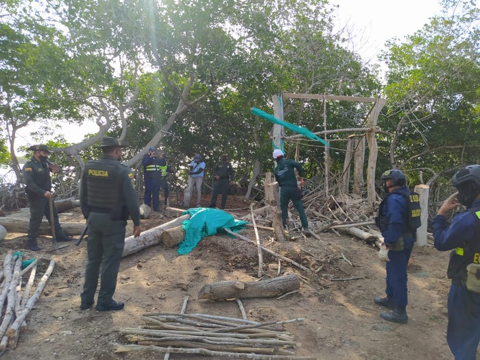 Durante el procedimiento desplegado por el Grupo de Protección Ambiental y Ecológica de la Policía Metropolitana de Cartagena de Indias, junto con las autoridades que conforman el Ecobloque, se desmontaron seis chozas artesanales, recuperando una hectárea de zona de manglar, deteniendo el proceso de relleno e invasión, en esta zona del norte de la ciudad.