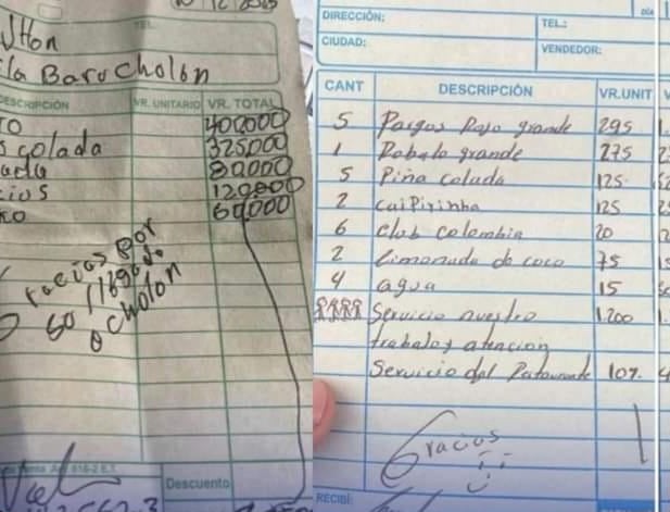 Un nuevo hecho de cobros excesivos se conoció en la ciudad de Cartagena. En redes sociales se puede ver la denuncia en la que muestran dos facturas que muestran los precios altos que cobran en las playas por alimentos y bebidas.