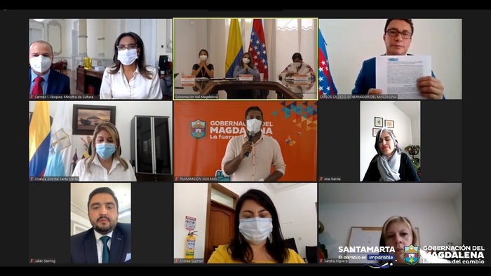 El acto protocolario se realizó de forma virtual y contó con la participación del viceministro de Fomento Regional, José Ignacio Argote; el secretario General del Ministerio de Cultura, Julián Sterling; la alcaldesa de Santa Marta, Virna Johnson; la jefe de la Oficina de Cultura Departamental, Diana Viveros; y la secretaria de Cultura del Distrito, Andrea Guzmán; entre otros.