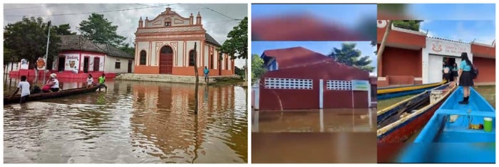 Las sedes de preescolar, primaria y secundaria están llenas de aguas negras, fango, reptiles e insectos. Al principio los niños iban a las clases en canoas, cuando aún no se había inundado el colegio, pero ya el colegio está inundado y por eso no están asistiendo”. Aseguró una madre de familia afectada.