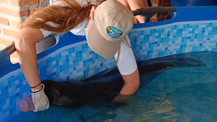 Sale adelante “Tasajerito”, el manatí bebé rescatado por pescadores de Puebloviejo