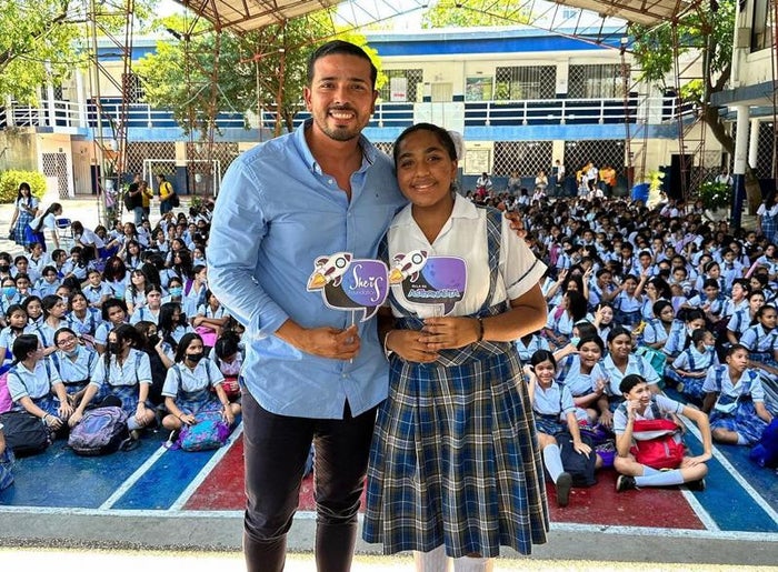 Javier Quintero Fragozo, se encargó de informarle a Alicia Margarita Moreno Beleño, delante de los más de mil alumnos del colegio, que “es un privilegio formar parte de este programa y entregar esta maravillosa noticia que permitirá que la creatividad de la niñez samaria viaje a las estrellas y se conviertan en empoderamiento a través de la ciencia, tecnología e innovación”.