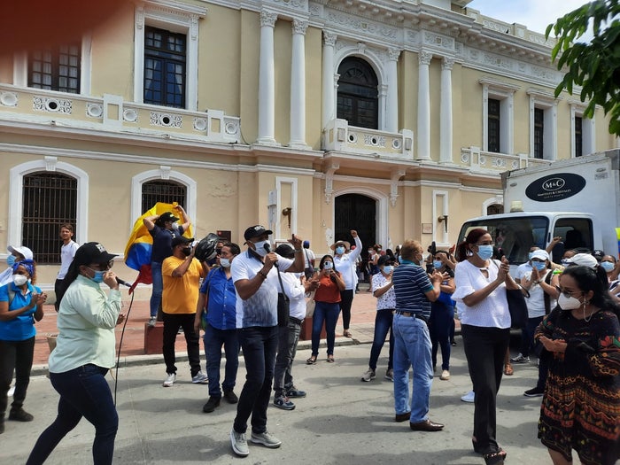Hasta la Alcaldía del Distrito de Santa Marta llegaron centenares de docentes, directivos y administrativos del Magisterio, para exigir el pago del retroactivo de los meses de enero a agosto, ya que señalan que se les ha afectado su economía y la sus familias.