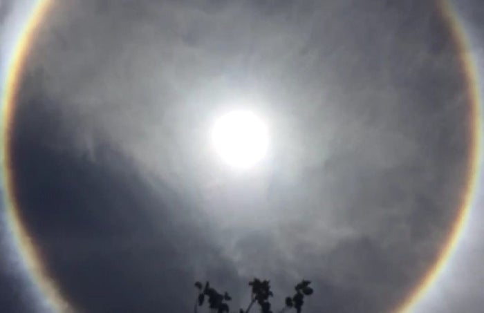 “Lo que se presentó fue un Halo Solar, que sucede cuando se solidifica las gotas de agua y el reflejo alrededor del sol se crea el arcoiris, cuando esto sucede se presenta generalmente lluvia fuertes, granizo en algunos sectores inusuales” afirmó Zuñiga.