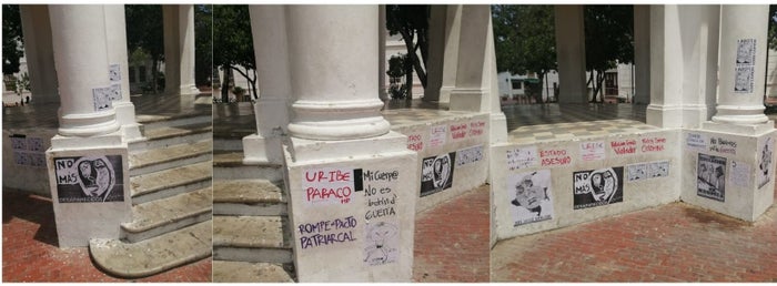 Se espera que este fin de semana las administración a través de la secretaría de cultura se realice una jornada de limpieza y pintura para recuperar el parque de los novios y el Simón Bolívar donde también fueron pegadas varias pancartas.