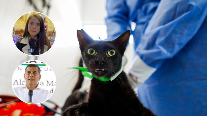 Cortesía: Alcaldía de Cartagena y cuentas de X de ambos funcionarios De fondo: Imagen de uno de los gatos rescatados - Fotografías Esmeralda Hernández y Dumek Turbay