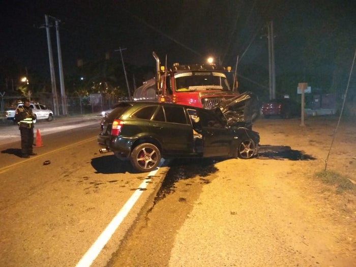 Eran las 10 de la noche de ayer miércoles 23 de diciembre cuando un camión cisterna y un automóvil terminaron accidentados en el kilómetro 8 en frente de Atunes de Colombia.