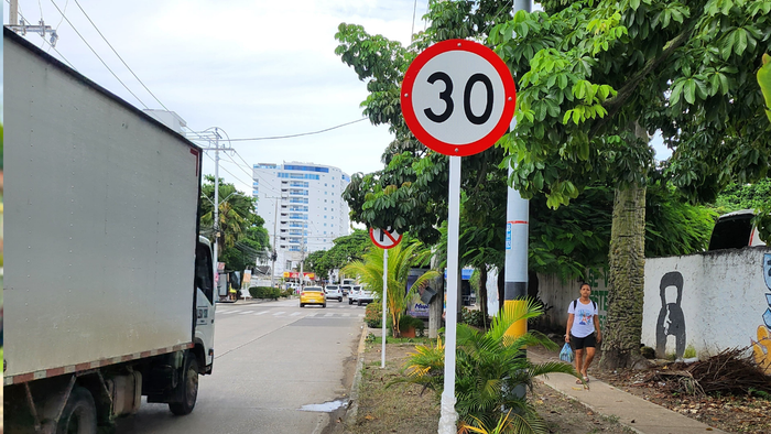 En el barrio Crespo y las zonas aledañas al Aeropuerto Internacional Rafael Núñez, se están instalando 60 señales reglamentarias, entre las que se destacan las de velocidad máxima permitida de 30 kilómetros por hora, así como señales de pare, prohibido parquear y pasos peatonales. Además, las demarcaciones de los pasos de cebra complementan estas medidas, ofreciendo mayor visibilidad y seguridad para los transeúntes.