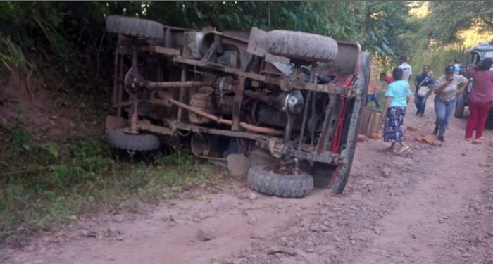 Al parecer, doce personas viajaban en un vehículo Toyota Jeep antiguo, el cual quedó sin frenos. El conductor logró maniobrar para evitar caer por un barranco en la zona.