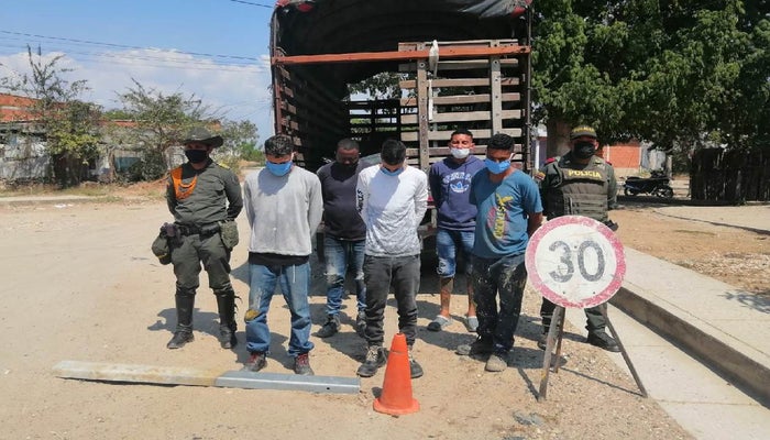 Las personas detenidas fueron identificadas por las autoridades como: "Andrés Rafael Escorcia De la Hoz, Farid Antonio Ibáñez Ruiz, Ángel de Jesús Padilla De la Hoz, Miguel Ángel Jiménez Anaya y John Fredy Aristizábal Quintero, quienes fueron puestos a órdenes de la Fiscalía General de la Nación porque presuntamente incurrieron en el delito de hurto". Se detalla en el informe de la autoridad.