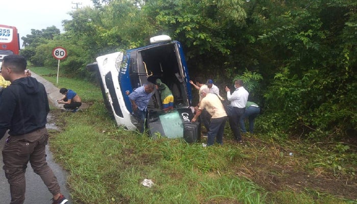Un bus de Placas WEO-475, marca Mercedes Benz, modelo 2018 servicio público inscrito a la empresa de transporte Caribe Express que cubría la ruta Montería- Cartagena, terminó volcado a un lado de la vía, el cual era conducido por Jeimer Navarro López, de Cartagena resultó ileso.