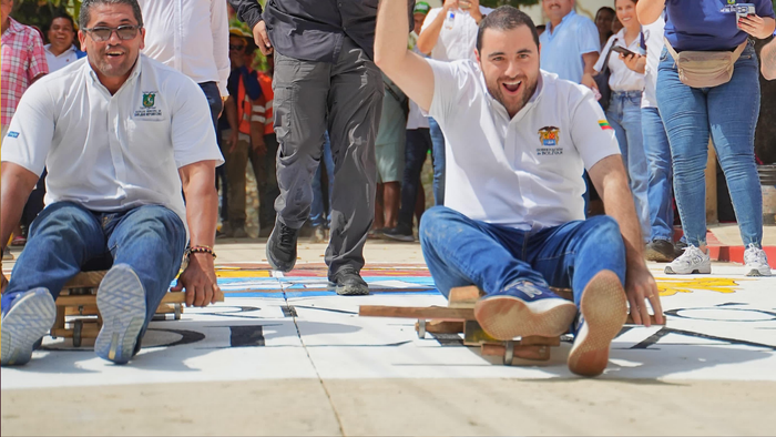 El mandatario sorprendió a todos al subirse a una patineta para comprobar la calidad del pavimento. Después de una divertida carrera junto al alcalde Guido Figueroa Martínez, el gobernador aseguró: “Antes, transitar por esta vía era un verdadero dolor de cabeza. Hoy, los niños pueden jugar tranquilos y las familias caminar sin temor al barro o los huecos. Cuando las obras se hacen con el corazón, el resultado es calidad y durabilidad.”