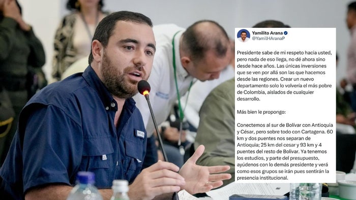 Ante esto, en las últimas horas el presidente Gustavo Petro propuso la creación de un nuevo departamento; sin embargo, el mandatario de los bolivarenses respondió que no considera sea esta la mejor opción, e incluso, entregó una nueva propuesta vial con la que considera que se conectarían mejor los 3 departamentos involucrados.