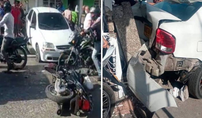 Un nuevo accidente de tránsito en la ciudad de Cartagena entre un vehículo particular tipo automóvil color blanco de placas KKC-348, y una moto, dejó como resultado a tres personas heridas. Sobre la Avenida del Consulado a la altura del barrio Escallón Villa, siendo las 8:30 de la mañana de este viernes 6 de enero, los residentes de la zona fueron testigos del fuerte choque donde el vehículo terminó metiéndose a la terraza de una casa.