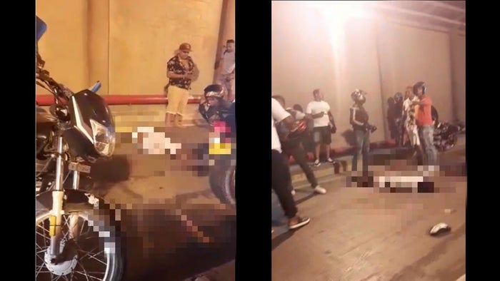 Varios conductores que acostumbran transitar por el Túnel de Crespo, en el carril con sentido hacía el corregimiento de La Boquilla se toparon con un grave accidente de tránsito entre dos motociclistas cuyos cuerpos quedaron tendidos a menos de dos metros el uno del otro.