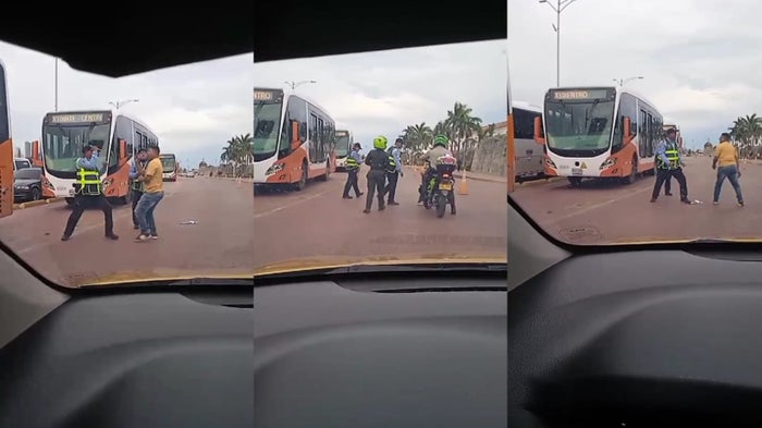 “El incidente ocurrió cuando el conductor de un taxi, con placa TFO 032 y perteneciente a la empresa El Roble, recogió un pasajero en una zona no permitida del Camellón de los Mártires, a pesar de que el semáforo estaba en verde. El agente, que estaba realizando su labor en la Avenida Blas de Lezo, detuvo el vehículo y solicitó los documentos del conductor”, se lee en el reporte del Departamento Administrativo de Tránsito y Transporte (Datt).