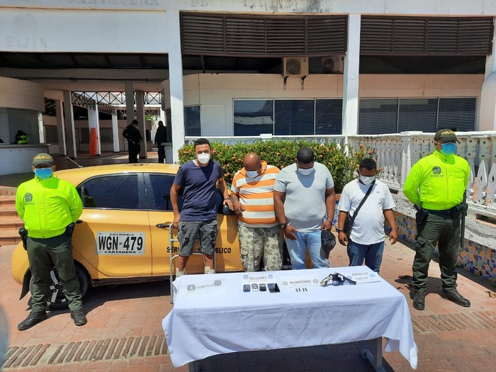 Armados y a bordo de un taxi, fueron capturados cuatro presuntos delincuentes con un amplio prontuario, en operativos contra el hurto desplegados por la Policía Metropolitana de Cartagena, en la avenida Pedro de Heredia, a la altura del sector Los Ejecutivos, en el suroriente de la ciudad Heroica.