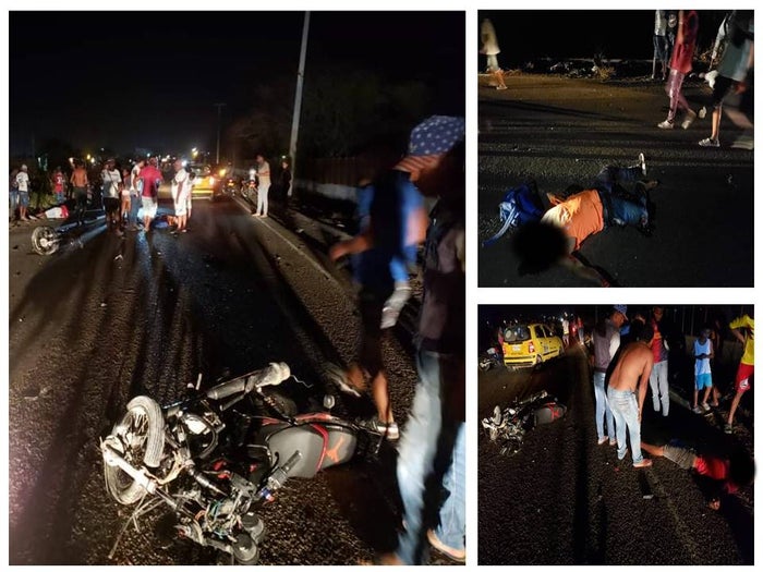 Contaron algunos curiosos que se acercaron al lugar del accidente, que el impacto fue fuerte, porque las motocicleta quedaron a metros de distancia y los cuerpos de los implicados tirados en la carretera.