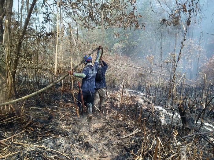 El secretario del Interior y gobierno del departamento del Magdalena, José Humberto Torres, indicó que entre el sábado y el lunes festivo se contó con el apoyo de un helicóptero de la Fuerza Aérea Colombiana con sistema bambi bucket, el que realizó 36 descargas, con cerca de 8 mil galones de agua, para apagar los focos del incendio.