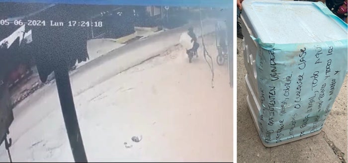 Dentro de la cava de icopor se encontraba el cuerpo de un hombre desmembrado, a la víctima le cortaron todas sus extremidades y lo metieron dentro de una caja que tenía un rótulo que decía, “esto le va a pasar a todos aquellos que vendan drogas y cobren extorsión”.
