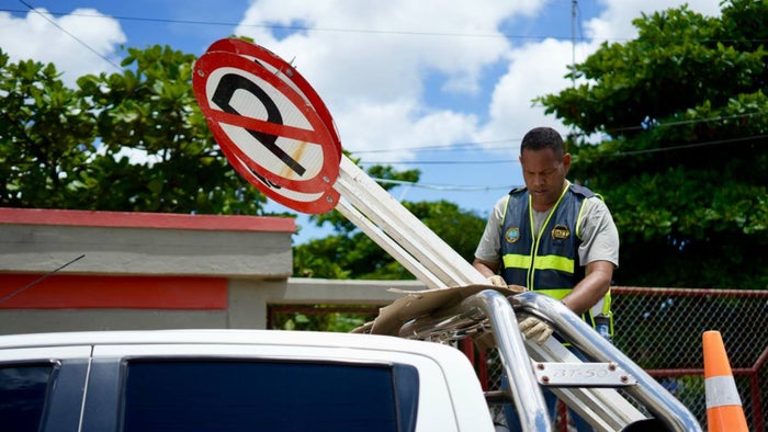 En total, fueron tres señales las instaladas en la diagonal 21, dos de prohibida circulación de transporte de carga pesada y una de prohibido parquear.