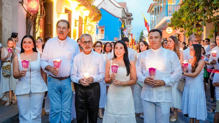 El evento, contó igualmente con la participación de la primera dama de Cartagena, Liliana Majana, también estuvo la presidenta de Corpoturismo, Liliana Rodriguez, la secretaria de Turismo, Teresa Londoño y por supuesto, el obispo de Cartagena, Francisco Javier Múnera.